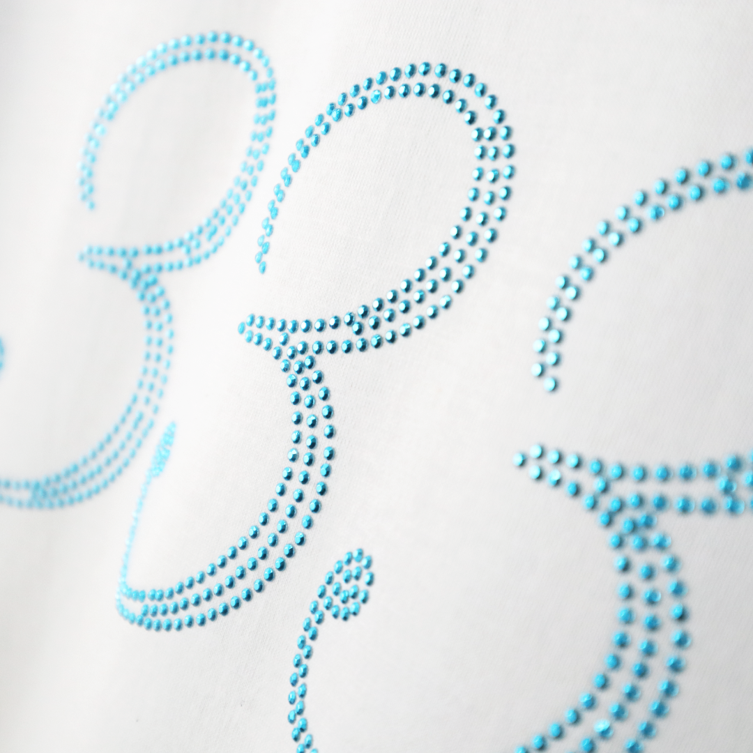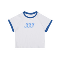 Baby Tee confeccionada em meia malha 100% algodão BCI, com logo 333 aplicados em strass.