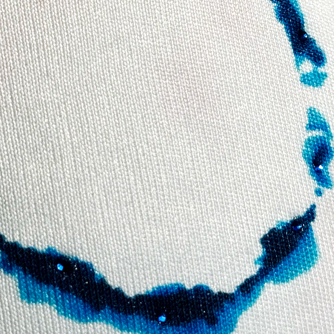 Boné Trucker com mancha 333 estampada, e detalhes em strass aplicados.
