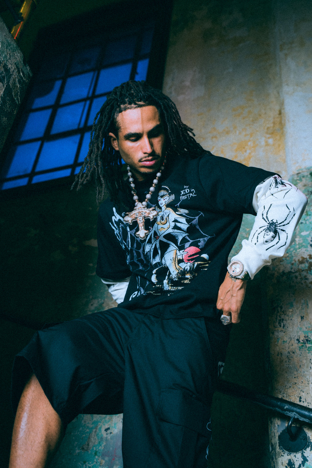 Camiseta Manga Longa Sobreposta da collab oficial entre Ed Hardy x Matuê.
